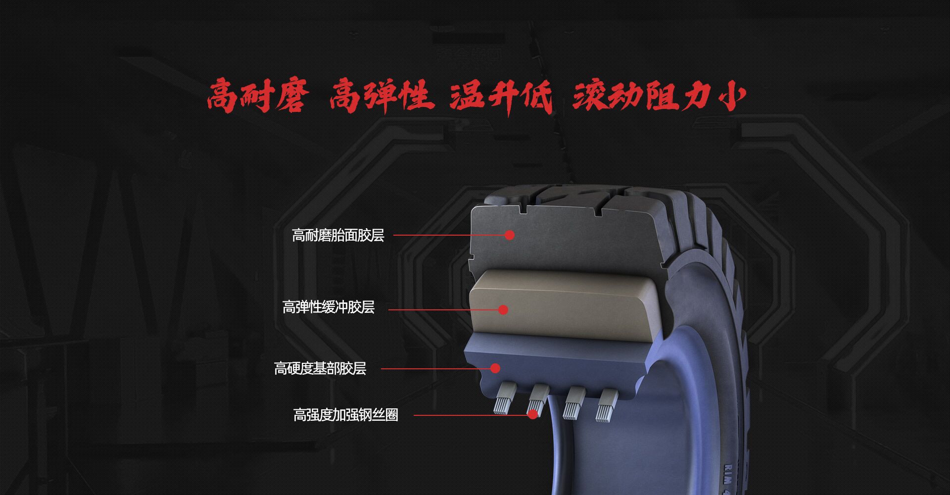實心輪胎主要適用于地面復雜惡劣工況下的叉車、拖車、裝載機、軍用車輛等機械車輛的配備,廣泛應(yīng)用 于鋼鐵廠、礦山、建筑工程、港口、物流、廢金屬加工廠等領(lǐng)域。 實心輪胎胎體為全橡膠構(gòu)成,最大限度地保證了輪胎的耐刺穿性,從根本上消除了工業(yè)車輛在承載運行過 程中及在惡劣的作業(yè)環(huán)境中的輪胎刺穿隱患。實心輪胎的負荷—形變量小、運行穩(wěn)定性好,因其耐刺耐撕、耐 高溫、耐腐蝕、耐磨損,無需充氣,避免了頻繁補胎換胎的繁重勞動,可提高車輛的使用率和工作效率,在低 速、高效運行車輛